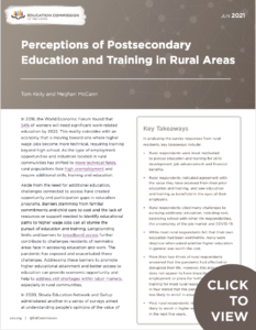 Rural communities are not a monolith; they have unique challenges that require unique policy solutions. One of the best ways to understand the diversity of those challenges — and, in turn, identify the most effective solutions — is to hear directly from rural communities. This Special Report analyzes data from a 2020 Strada Education Network/Gallup survey on the perceptions of postsecondary education and training, focusing on the responses from rural residents specifically. In general, rural respondents answered favorably when asked about motivations for past and future education and indicated perceived value in pursuit of education and training. However, most respondents indicated they would not pursue additional education and training in the next five years, in part because of the barriers they identified — including COVID-19, costs in general, and uncertainty in career pathways.