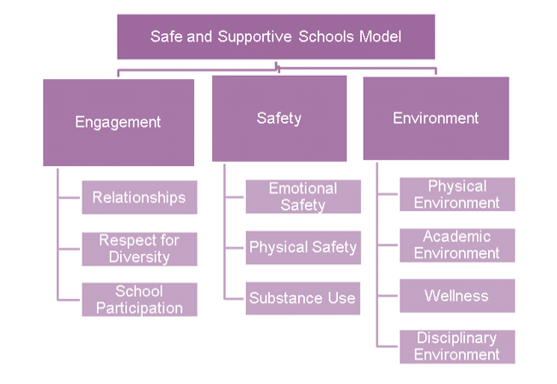 Research shows that positive school climate is tied to better attendance rates, test scores, promotion rates and graduation rates. Conversely, negative school climate may lead to lower student achievement, poor student engagement, low graduation rates and increased disciplinary issues. According to the Safe and Supportive School Model, which was developed by a national panel of researchers and other experts, positive school climate involves several overlapping areas of focus: